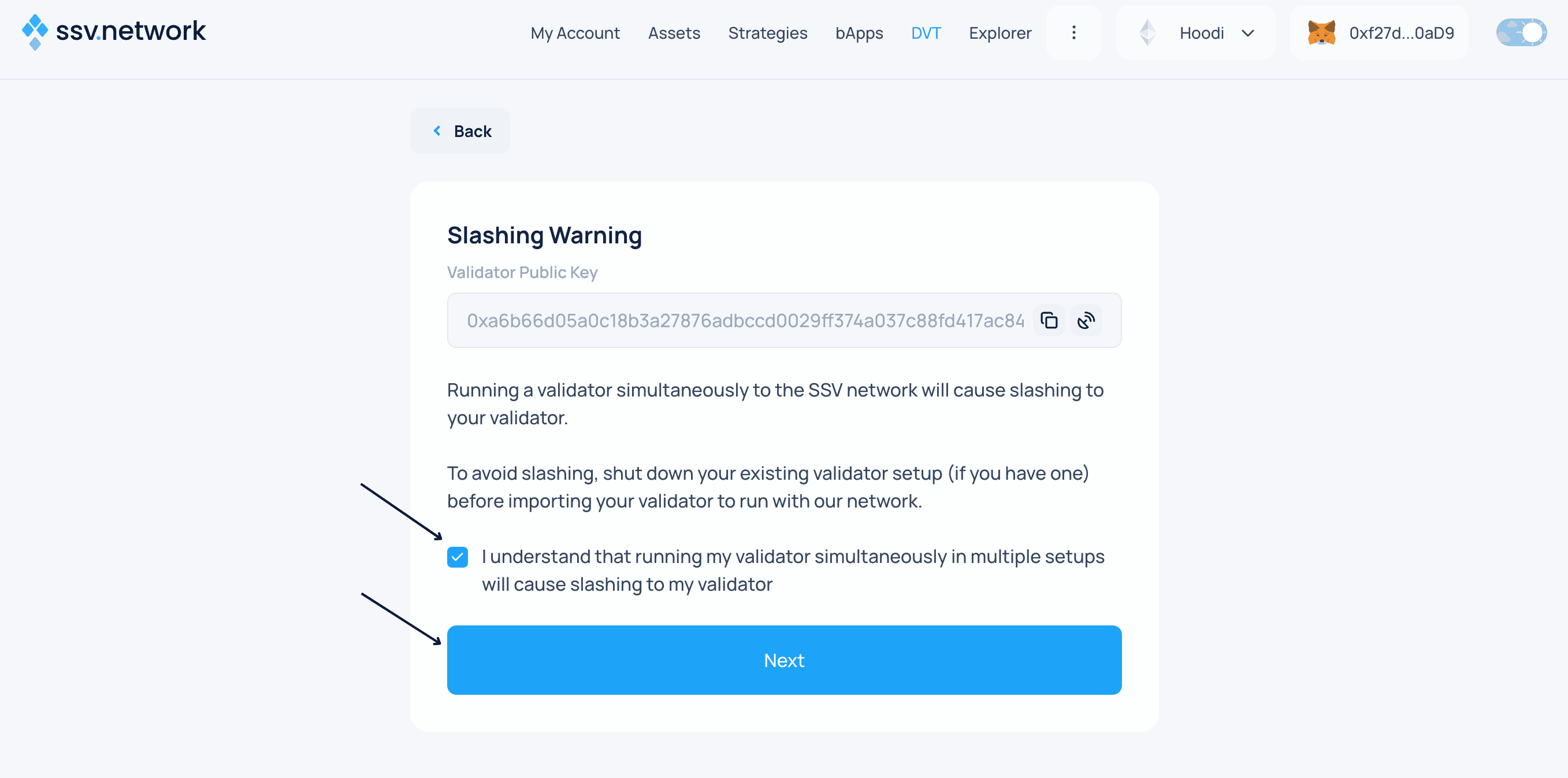 - Click Register Validator and confirm in your wallet