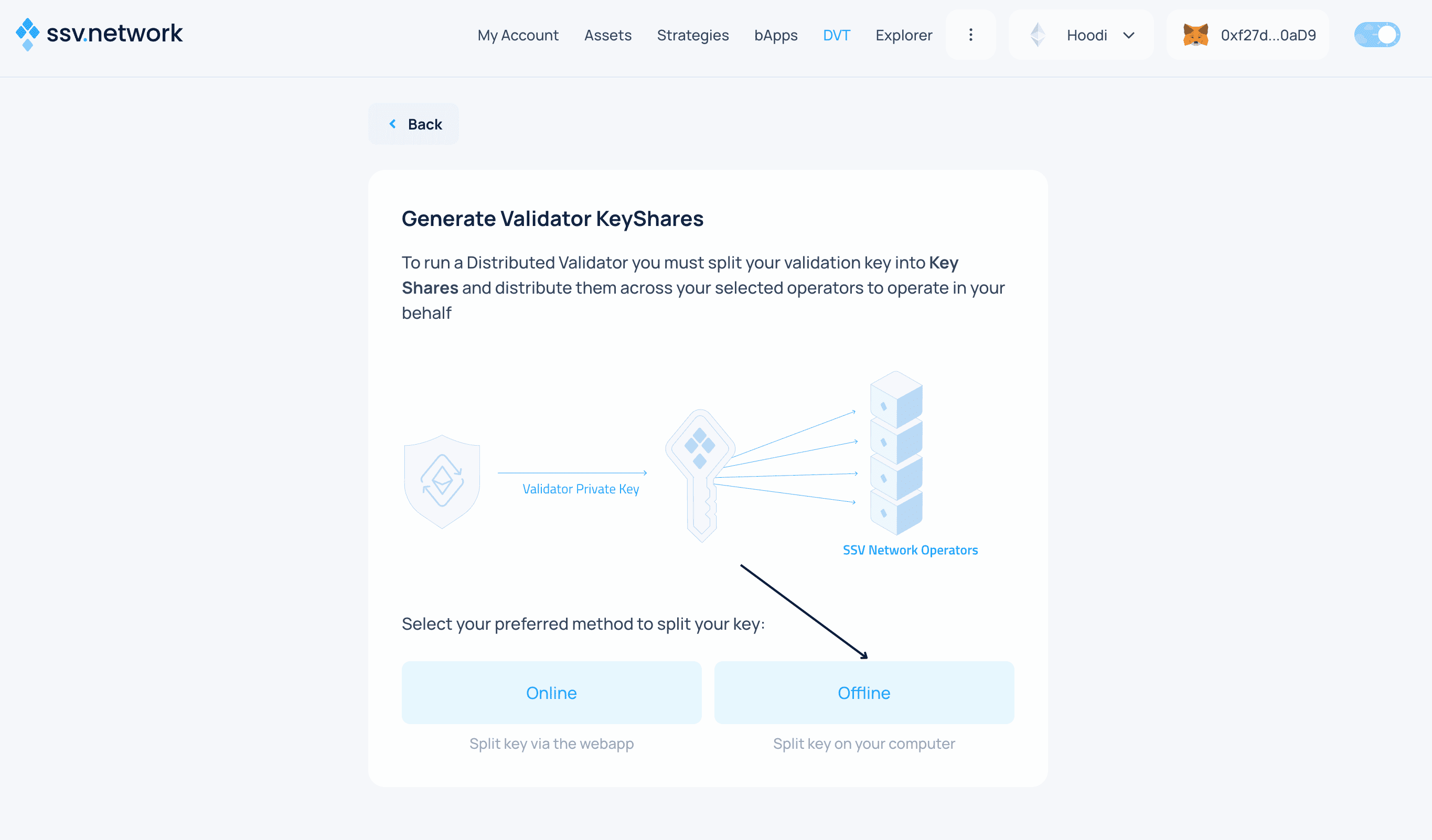 - Select the Offline method to split your key