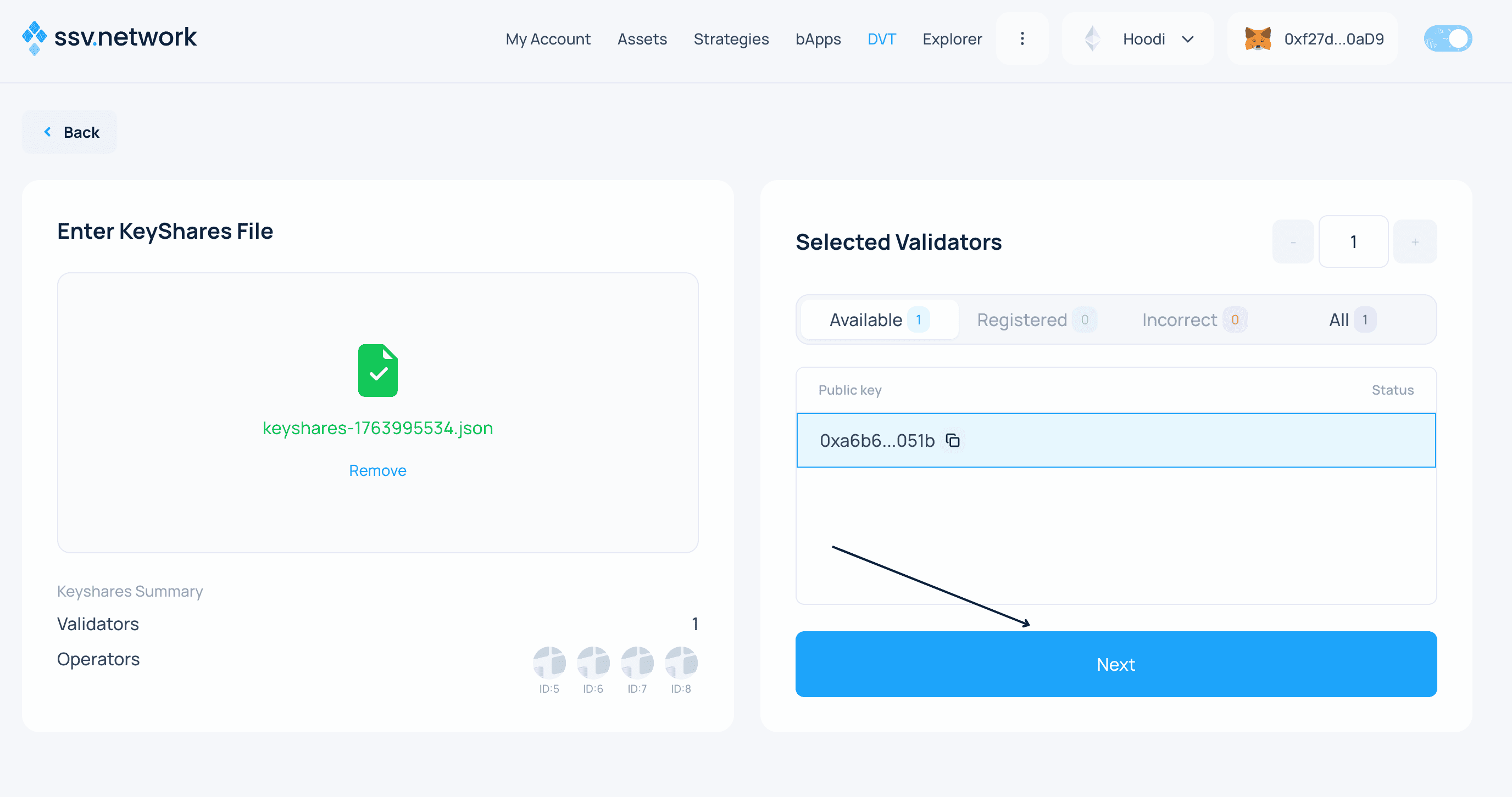 - Congratulations! 🎉 Your validator is now registered on the SSV network and being managed by your selected operators.